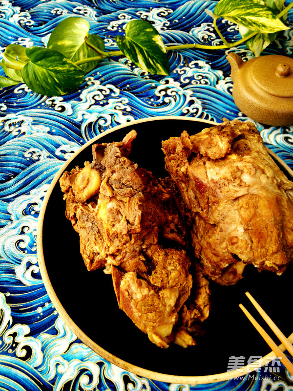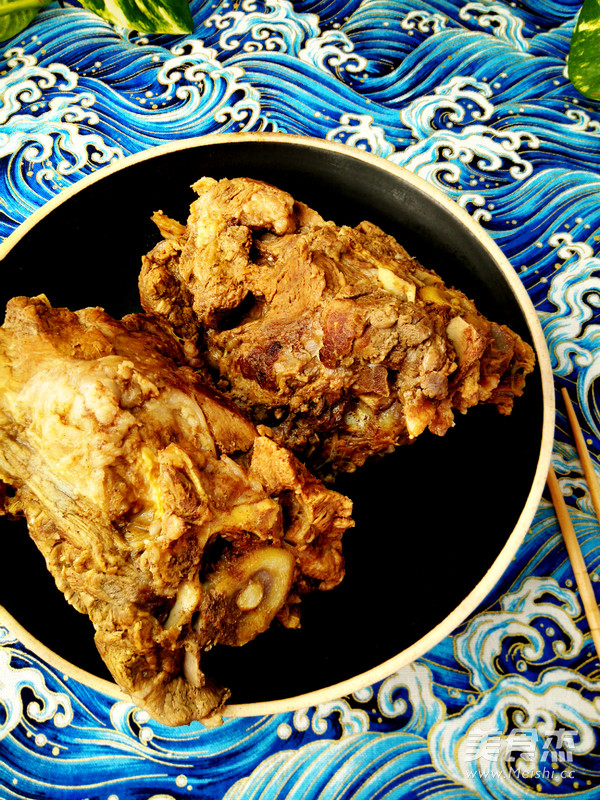 4.从电压力锅中倒出,加入盐和老抽,小火继续焖炖,直至肉软筋烂。关火后再酱一两个小时更入味