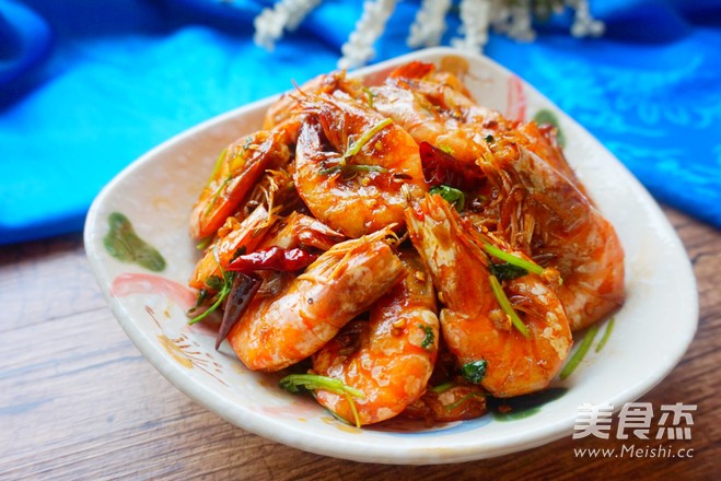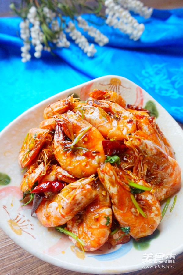 4.锅里烧热适量油,把腌好的虾炒红至干爽盛出。