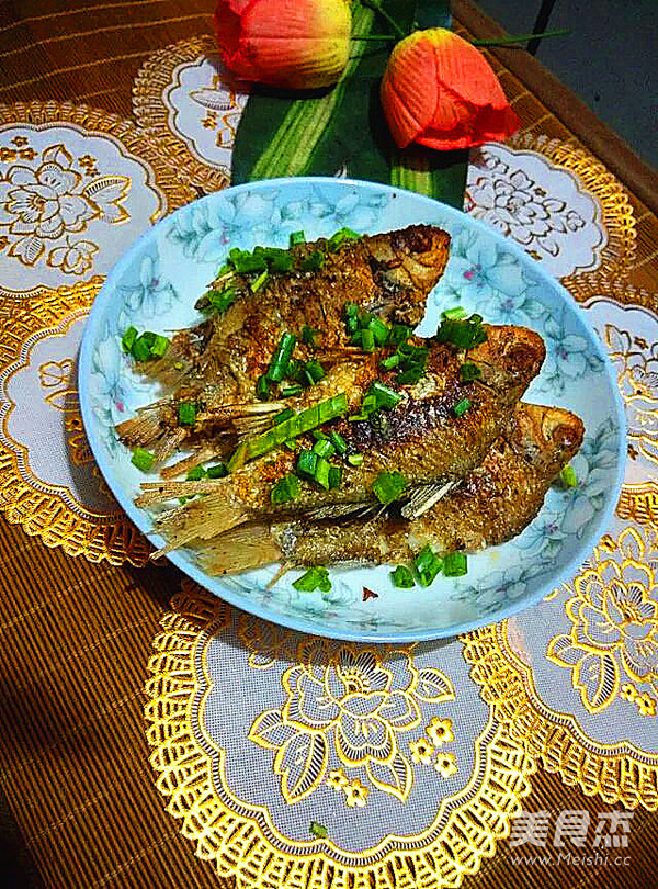 4.已经煎好的鲫鱼撒上葱花即可