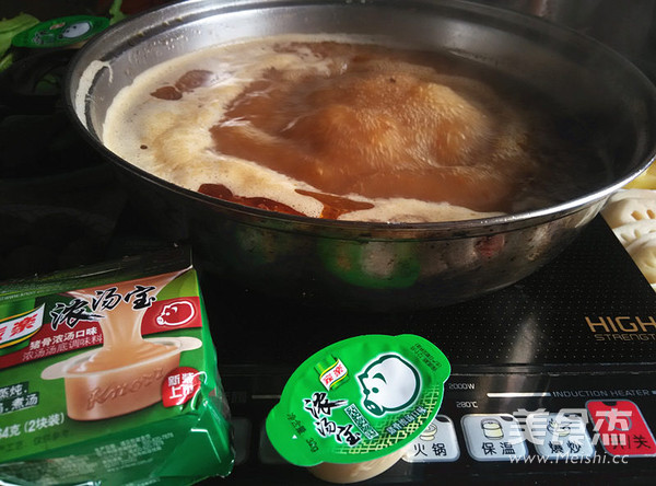 4.加入大量水,放两块家乐浓汤宝和少量盐