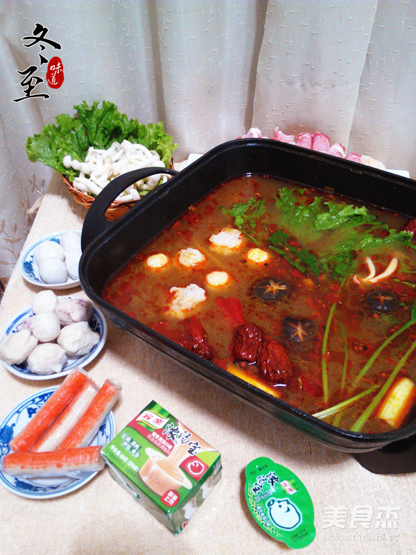 植物油2汤匙 花椒5克 郫县豆瓣酱2汤匙 葱3段 姜3片 蒜2瓣 冰糖1/2汤匙 干辣椒2个 大枣4个 家乐猪骨浓汤宝2盒
