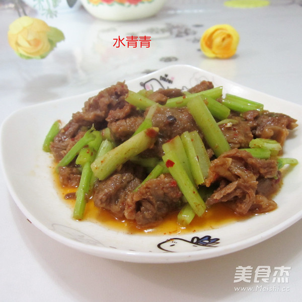 买回家的牛腩清水干净用开水煮二遍去腥味,然后放进电压锅里高压炖烂,配配上芹菜,调味料回锅炒香而成,香辣,下饭。