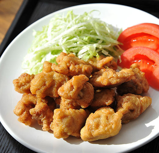 这款简单的日式炸鸡块是一款超级简单但绝对老少通吃的料理。鲜嫩的鸡腿肉,被炸得酥香松脆,因为切的块比较大,所以很好的保留了鸡肉内部的汁水。搭配切的极细的生菜丝和大块西红柿,非常解腻。如果你犯懒的话,可以直接用生菜叶卷着鸡块吃,就像吃烤肉那样,也相当过瘾呢!家庭聚餐、朋友聚会,这道菜一定会为你迎来满堂喝彩。走着走着……喝酒吃肉!干杯!