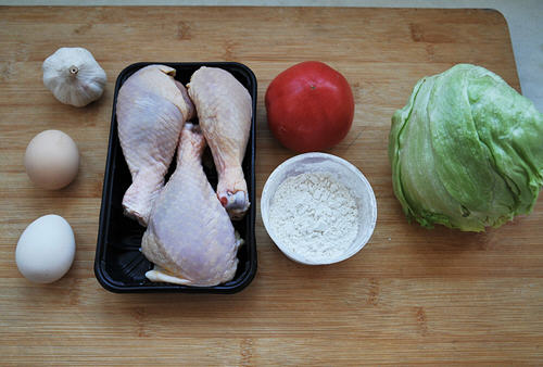 主料:鸡腿三个,鸡蛋两个,蒜(姜汁可以放一些,不过由于COCO讨厌姜味,所以没有放,不过味道也超级好呢)