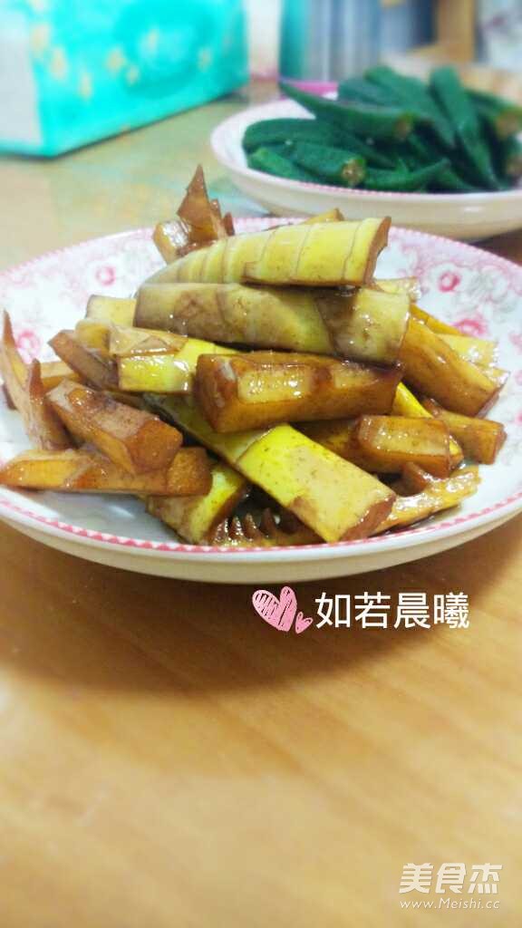 炒的时候加油需要比平常做菜略多一点,炒出来的春笋特别光亮。 口感是非常鲜美的。