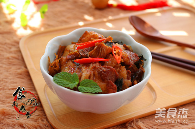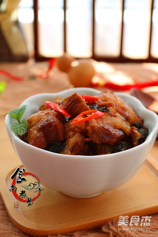 用菜干做红烧肉,食尚第一次尝试,出品让爱吃肉的某人大赞一番,出锅后食尚首先要检查品质,夹起一小块试试咸淡,轻轻咀嚼便知非常美味,菜干吸收了肉香和油脂变得软绵糯香,五花肉肥而不腻,一口咬下去有淡淡菜干特有的甘香,越嚼越香的瘦肉爽而不柴,尤其是第二餐再吃,味道更浓郁,更好吃!