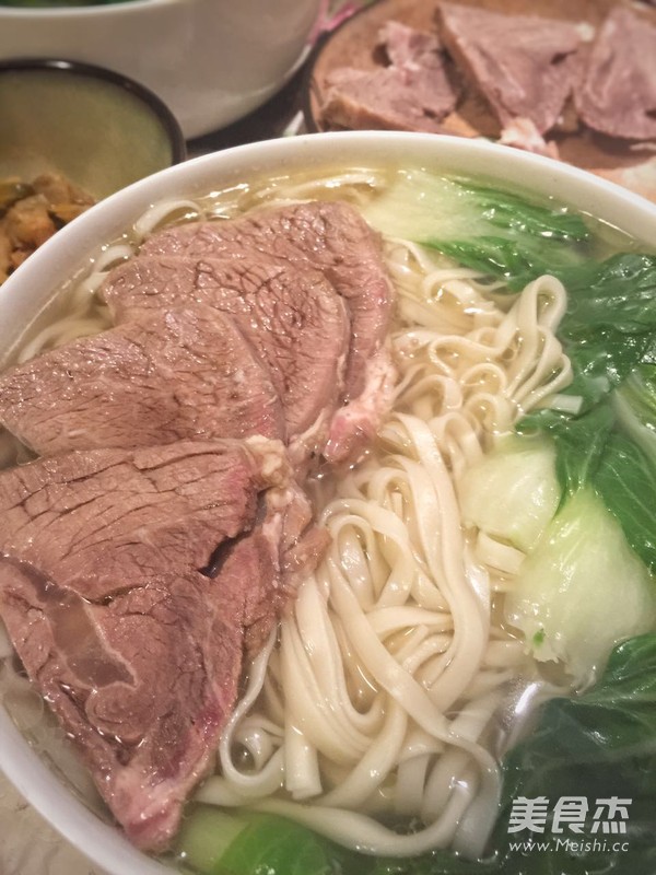 1、第四个步骤中,喜欢吃嚼劲足一些的可以炖1小时10分钟,喜欢松软一点的可以炖1小时30分钟。不要炖煮过久,否则切片时牛肉会易碎。 2、本道菜中的牛肉卤可以用来当汤头煮菜、下面。 3、干切牛肉搭配面条,也是美美哒。可以采用牛肉卤当汤头,需要加入青菜的可以将青菜烫熟后盖浇在面上,不要将青菜放入牛肉汤中一起煮,否则菜汤味会掩盖牛肉汤味。