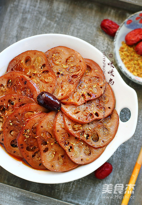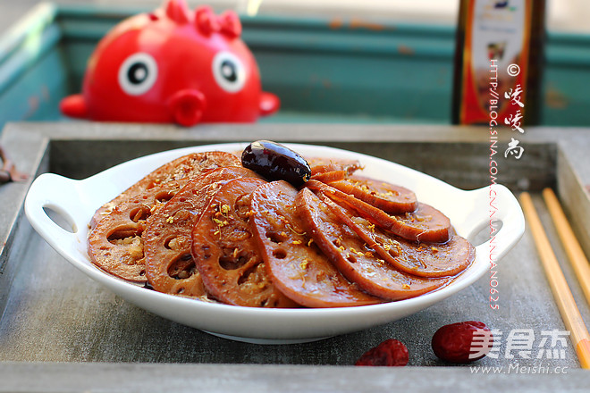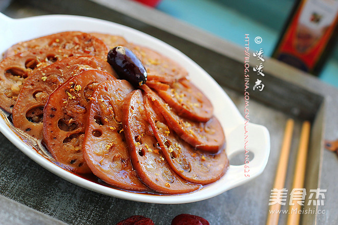 10.码盘,浇上煮过的汤汁,撒上桂花即可食用。