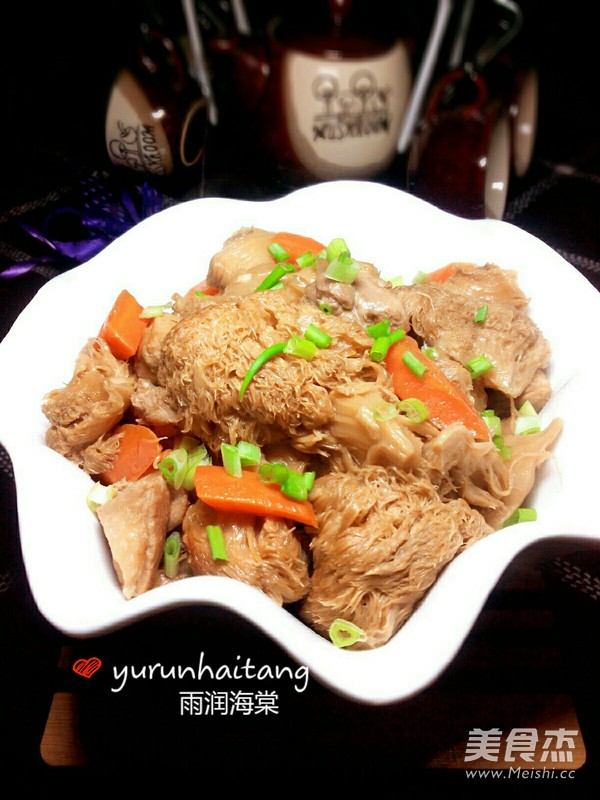 2.准备食材:将泡发好的猴头菇用水焯一下,然后挤出多余水分