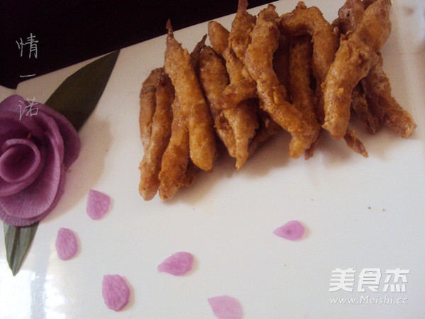 1、这里用的高丽糊和平时挂的糊做法不一样 2、银鱼小巧,非常好成熟,油炸变色即可 3、这道菜趁热吃口感最好