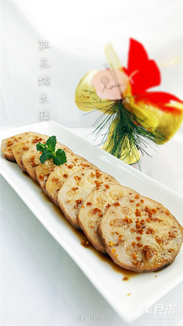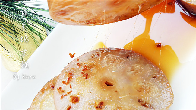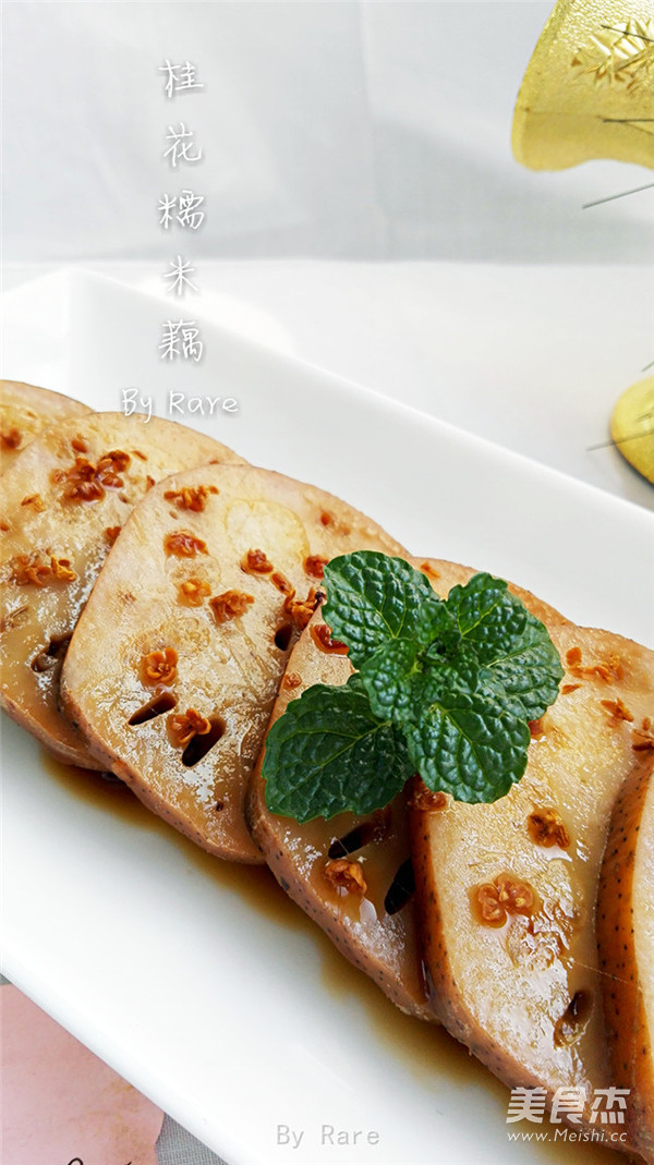 桂花糯米藕又名蜜汁糯米藕,是江南地区汉族传统名点之一,糯米灌在莲藕中配以桂花酱、大红枣一起精心制作,是江南地区传统菜式中一道独具特色的中式甜品,以其香甜、清脆、桂花香气浓郁而享有口碑。杭州桂花糯米藕软绵甜香,西湖的莲藕则是藕中的极品,同样著名的南京桂花蜜汁藕更是和“桂花糖芋苗、梅花糕、赤豆酒酿小圆子”一同被誉为金陵南京四大最有人情味街头小食。