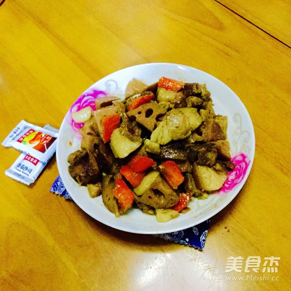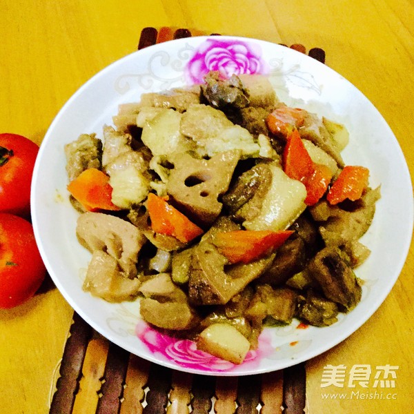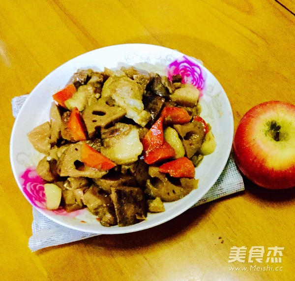 1.莲藕去皮,洗净,猪肉切片,用油盐腌10分钟,胡萝卜切块