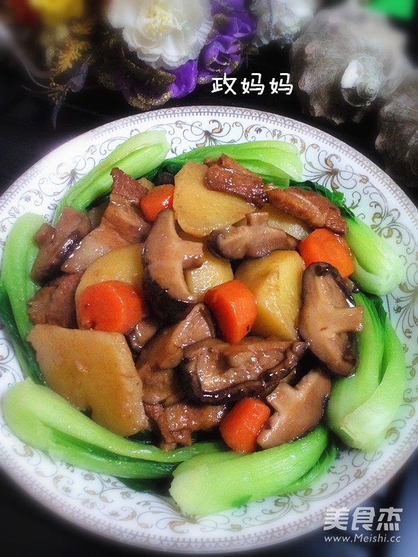 香菇6个 土豆2个 胡萝卜0.5个 猪肉150克 油菜150克
