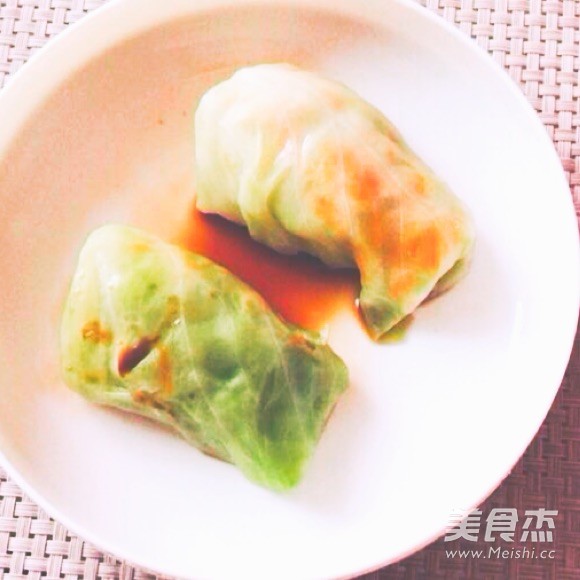 5.折叠起来卷成卷,卷好的包菜放进蒸锅隔水蒸熟