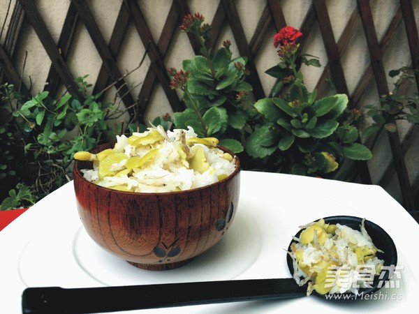 8.开盖,香喷喷的小鱼干蚕豆饭就可以开吃了