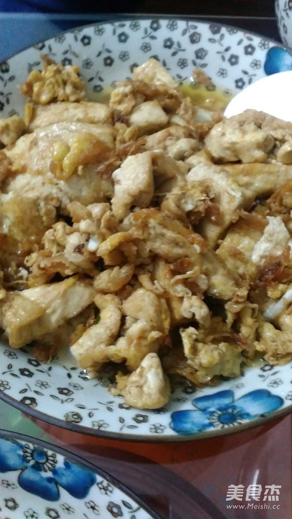 3.锅里热油,把裹上鸡蛋的豆腐放入锅中煎,煎到两年金黄即可,最后把全部煎好的豆腐倒入锅中后加入酱油翻炒一会后就可盛出了。