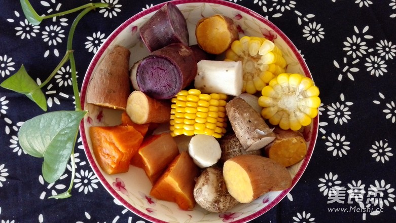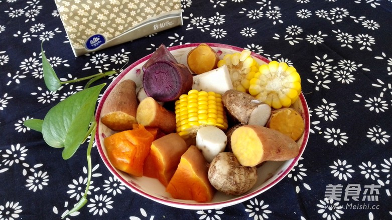 红薯2个 紫薯1个 玉米1个 芋头2个 山药1根 南瓜1小块