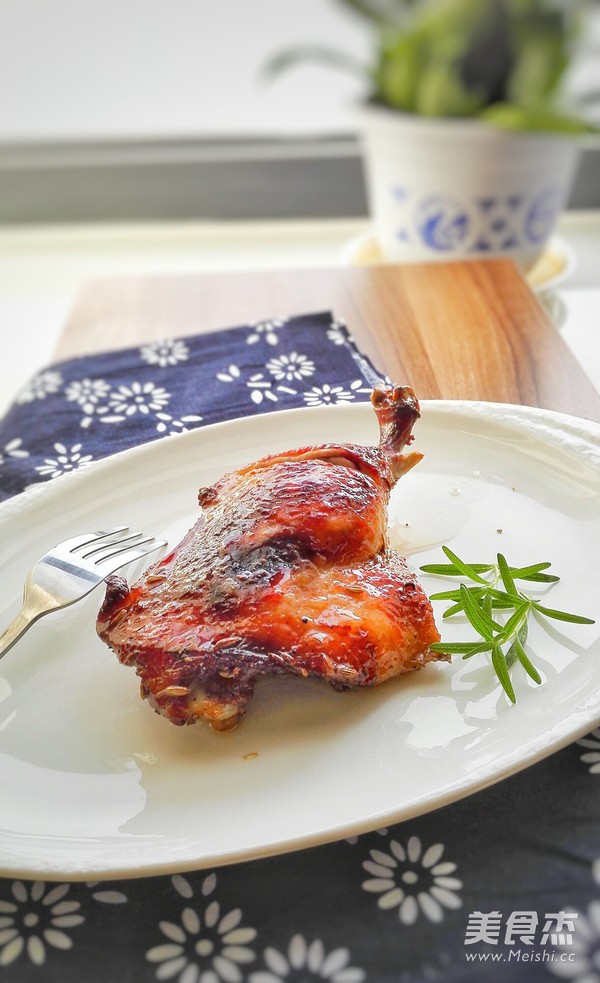 7. 25分钟后取出,打开锡纸,哇,香味扑鼻,锡纸里面看到都是油和汁水,吱吱的响着。刷上蜂蜜和部分腌料料汁,不包锡纸200度烤20分钟