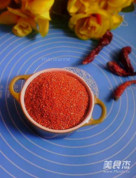 辣椒粉是红色或红黄色,油润而均匀的粉末,是由红辣椒,黄辣椒,辣椒籽及部分辣椒杆碾细而成的混合物,具有辣椒固有的辣香味,闻之刺鼻打喷嚏。正宗的应该是用石臼捣出来的,也可以直接用干辣椒,放在太阳下爆晒或是用文火在锅里焙干后捣成粉状。如今,家庭条件都好了,大部份都有搅拌机,制作起来就更方便啦,关键是自己做的吃着更放心。