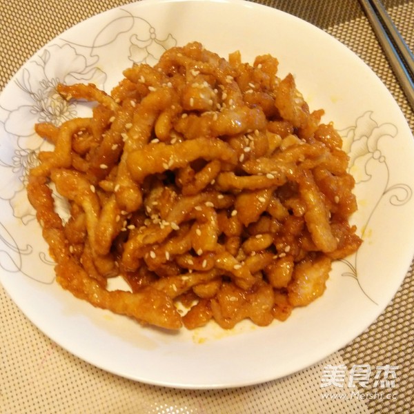 糖醋口感的瘦肉丝,非常美味,也很受孩子们的喜爱。