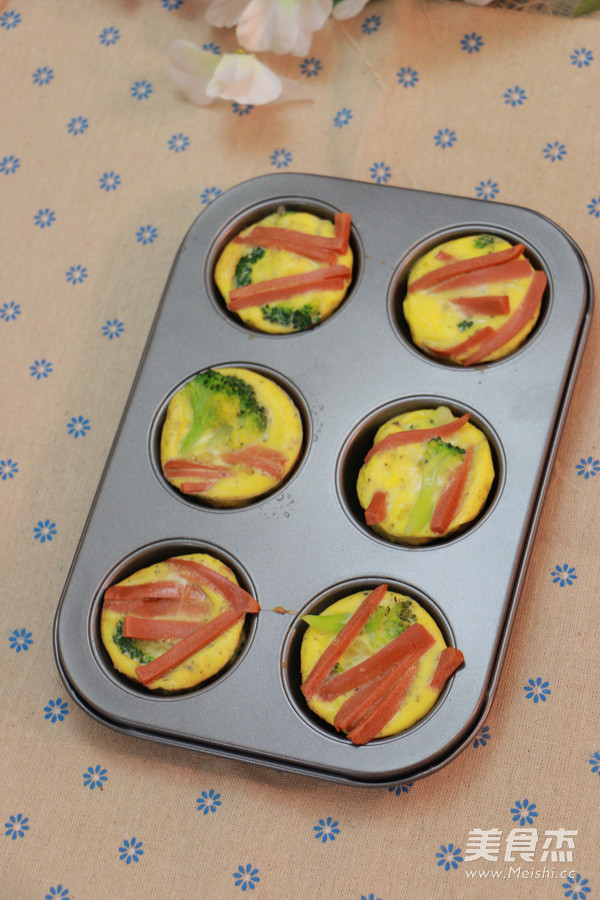 1、西兰花、火腿等食材可随意更换成自己喜欢吃的,不如菠菜、鸡胸肉等都可以; 2、蛋液倒入模具之前,模具内需涂抹少许植物油防沾(如果你的是不沾模,这步可省略); 3、烤好后的拱蛋会有轻微的回缩现象。