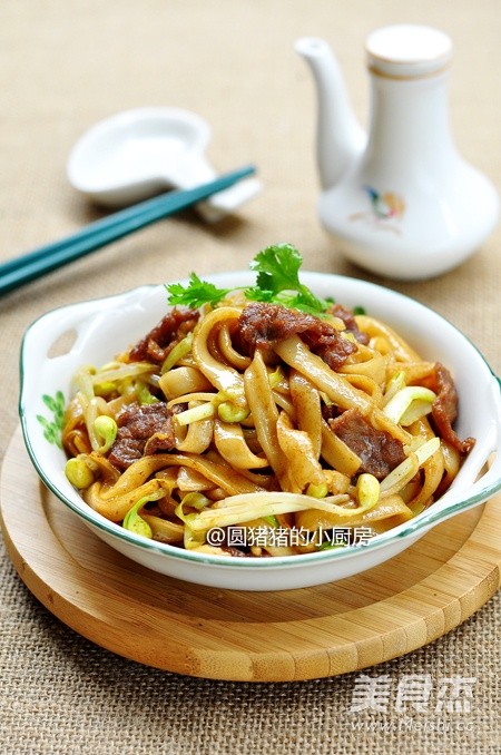 材料: 沙河粉600克,韭黄120克,黄豆芽120克,新鲜牛肉150克