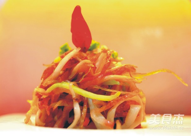 2.培根.胡萝卜、西兰花梗分别切成丝.