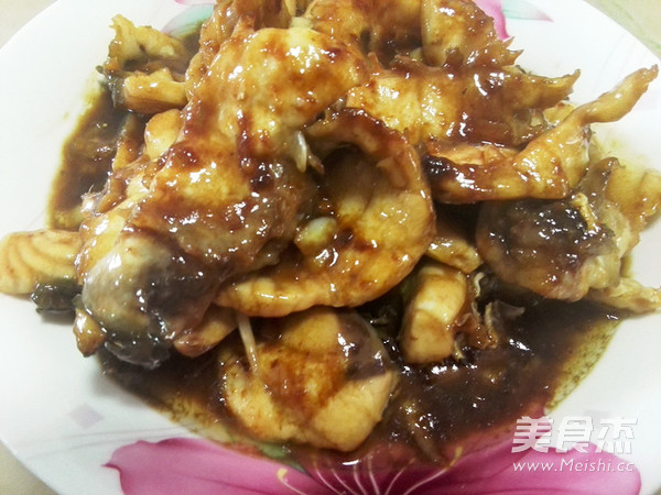3.放入适量的酱油、蚝油、食盐和糖,加入少量清水炒至鱼肉熟透即可关火。