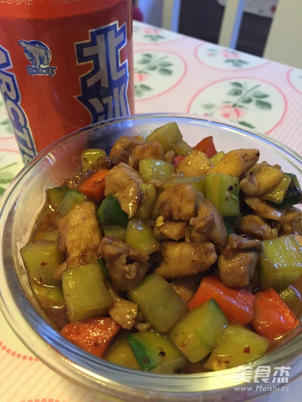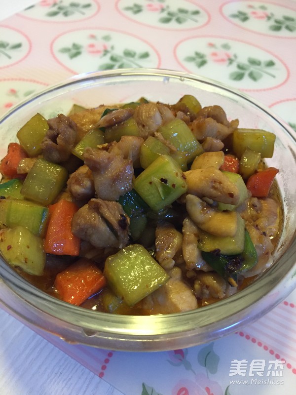 1、鸡腿肉用淀粉抓一下,更鲜美; 2、胡萝卜丁要先炒,不然会硬; 3、黄瓜丁翻炒一下就放味汁,然后大火爆炒,不要炒太久,否则出水。