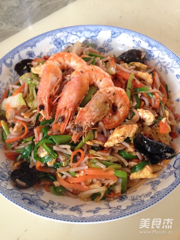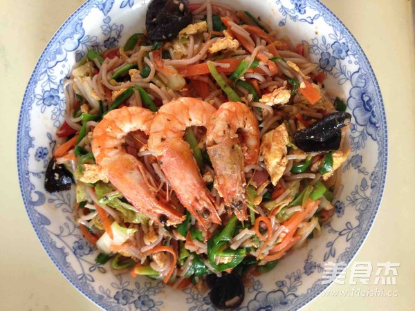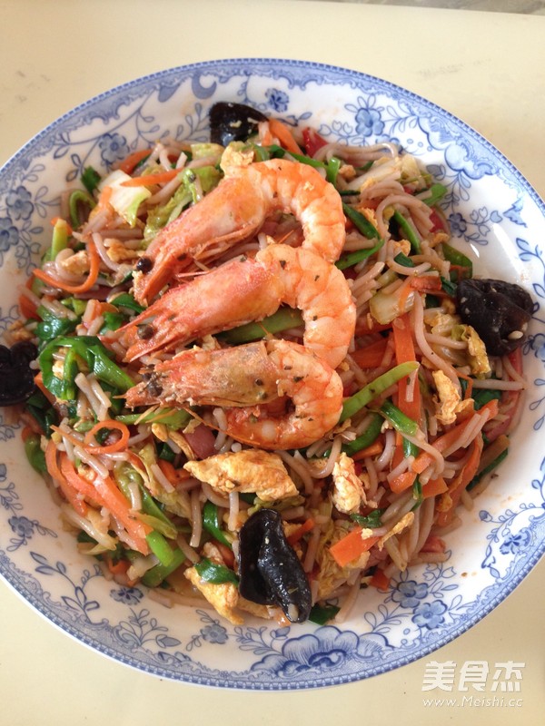 柠檬罗勒虾炒米线的做法