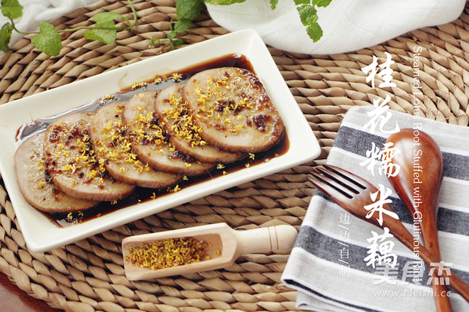5.煮好的藕切片淋上收浓后的糖汁撒桂花即可享用