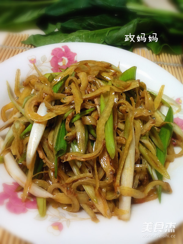 3.将小银鱼和葱丝放入干净盆中,加入味极鲜酱油