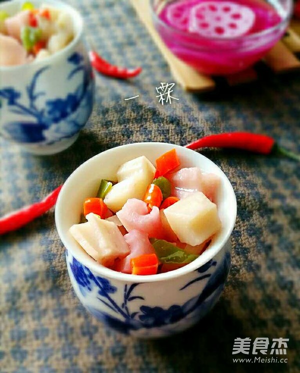 春节就要到了,油腻的吃多了来口酸辣耦,清爽脆口。白色藕丁配上胭脂耦丁增添节日的色彩。