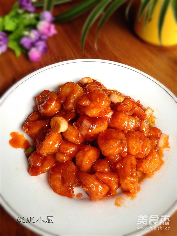 13.迅速倒入炒好的酱汁中加入葱白丁快速翻炒均匀出锅装盘