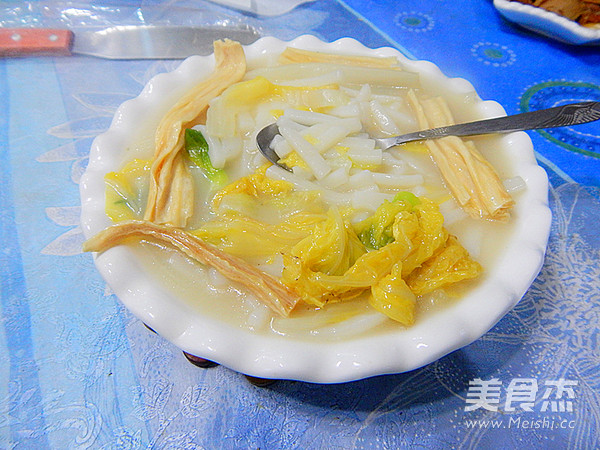 晚上孩子要上兴趣班,天也挺冷 的,想着做点暖和的而且能抗饿的给孩子吃 这不煮个年糕汤再好不过了