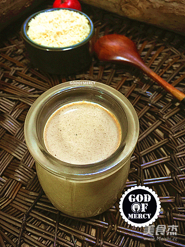11.放入蜂蜜。启动破壁机,心中默数30秒,将花生和芝麻充分混合打磨细糊状,花生芝麻酱就出炉了