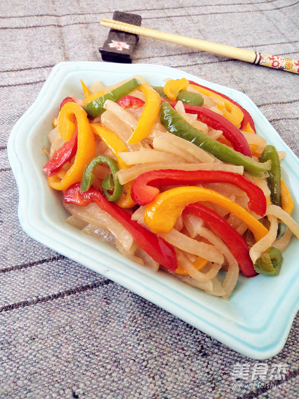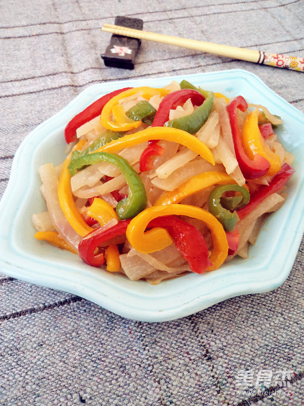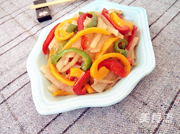 将冬吃萝卜这句话落实到了极致,进入冬季,各种萝卜没少吃。白萝卜与彩椒组合,很清爽的一道菜,好吃也好看,养生也保健。