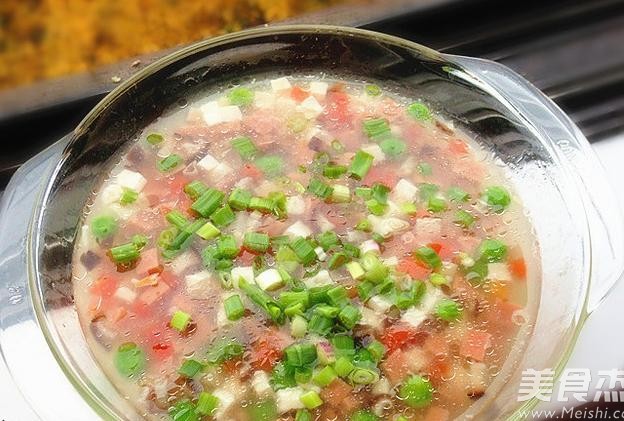 6.把做好的羹淋在蒸好的鸡蛋上面,撒上葱花即可