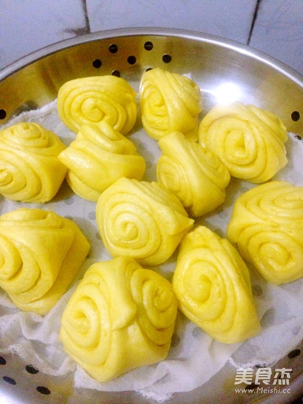 10.发酵以后是漂亮花卷形状的,因为压的时候没压好,发酵变形了,总结经验,发酵好以后的花卷冷水上锅大火蒸20分钟就好