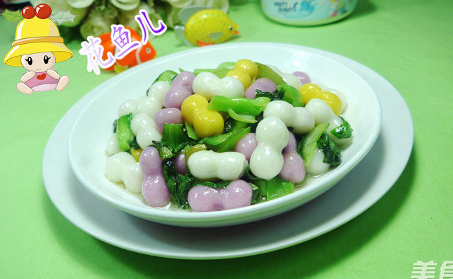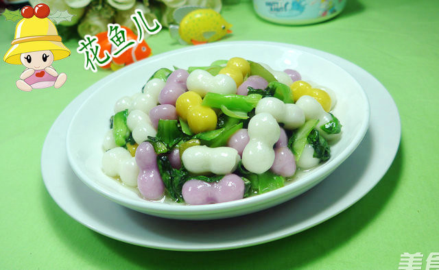 菜芯炒三色年糕果是我儿子的早餐。。。