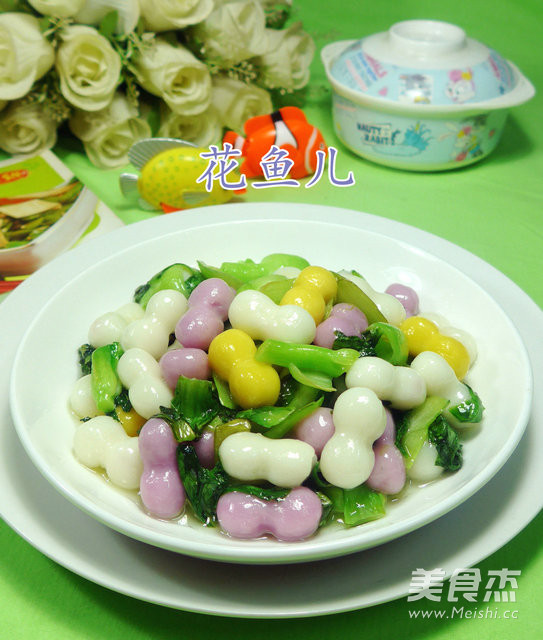 这种三色年糕果去年买过一次,昨天和老公一起去麦德龙超市买一些东东。走到冷冻区时,又看到了三色长生果年糕,还是觉得挺好看的就买了,这次是配上菜芯炒来吃吃。。。