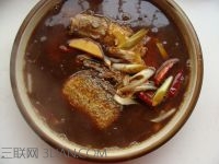8.食用时,将料汁倒在锅中,再根据个人口味加适量糖,煮开。