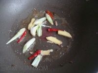 4.利用锅中底油,炒香葱姜干红椒