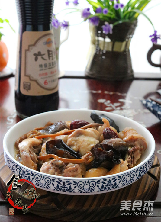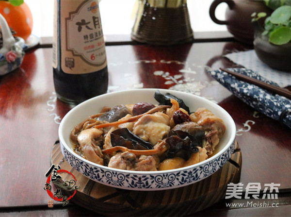 草鸡半只 冬菇(干)20克 干木耳20克 黄花菜20克 红枣6粒
