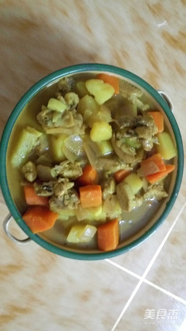 8.胡萝卜和土豆熟后加入生粉浆拌匀,烧开即可