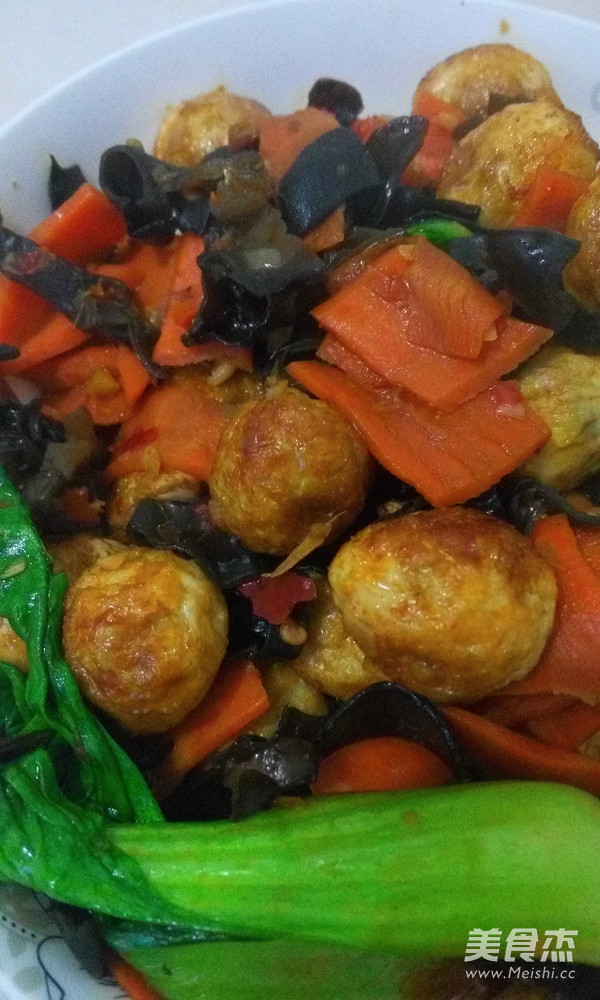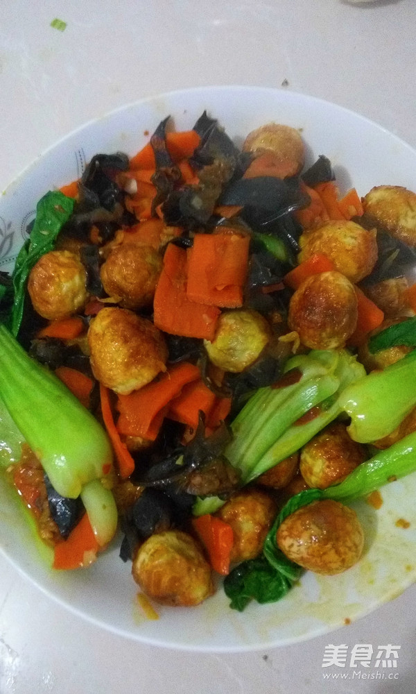 鹌鹑蛋500克 胡萝卜70克 木耳(水发)100克 小油菜2颗
