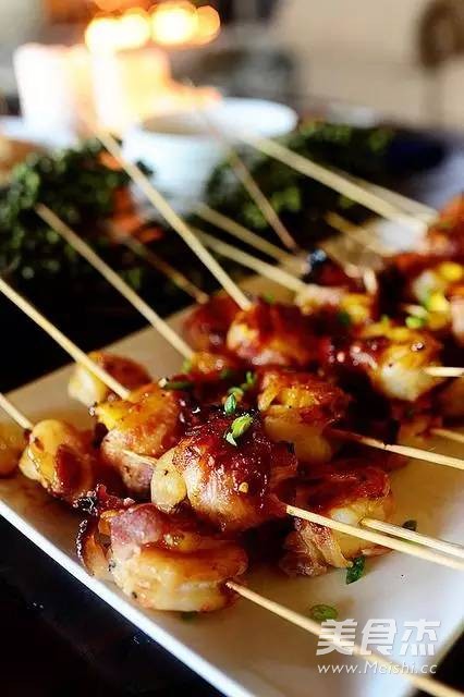 烤箱也能烤出如此高大上的菠萝虾肉培根串,刷上一层秘制酱汁,口水已经止不了。。。只要20分钟,实际要1小时20分钟,因为要将木串在水中浸泡1小时。