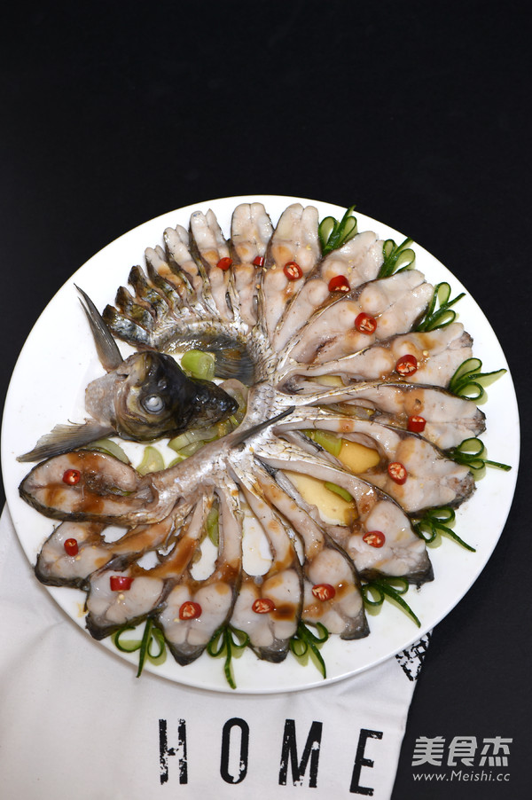 对于从小长在长江边的我来说,鱼是餐桌上的常客。清蒸、红烧、酱炖或是油炸甚至腌鱼各种做法都是美味。鳊鱼是湖北特有的一种鱼,头小身体扁扁的。新鲜的鳊鱼最合宜清蒸。小时候一到过节妈妈就会给我们做这道清蒸鳊鱼的菜肴。因为形似孔雀张开的尾巴所以取名为“孔雀开屏”。清蒸最能保持鱼的鲜美,而火候和时间是关键。上汽之后蒸五分钟即可出锅。这是妈妈的秘诀。
