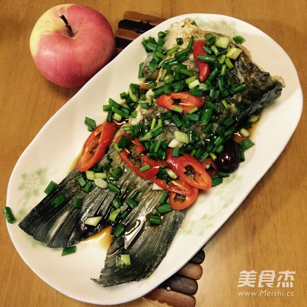 12.捞起鱼尾,撒上葱花,淋上蒸鱼豉油这个菜就OK了