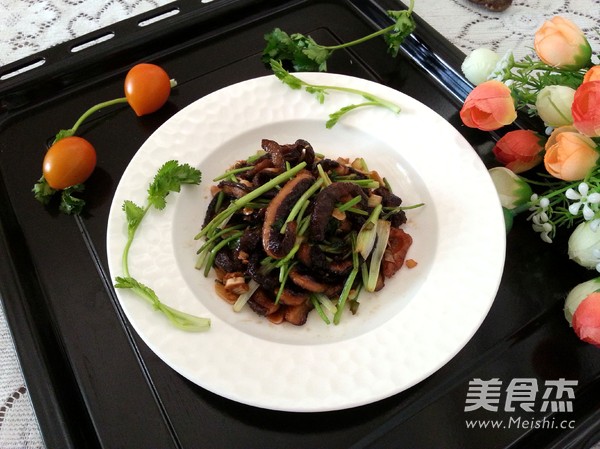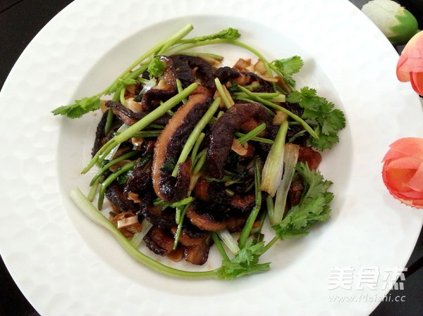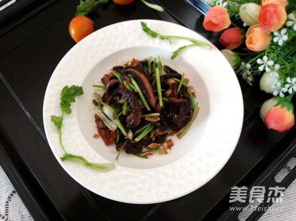 7.锅内少许底油,大火,将香菇段下入,翻炒